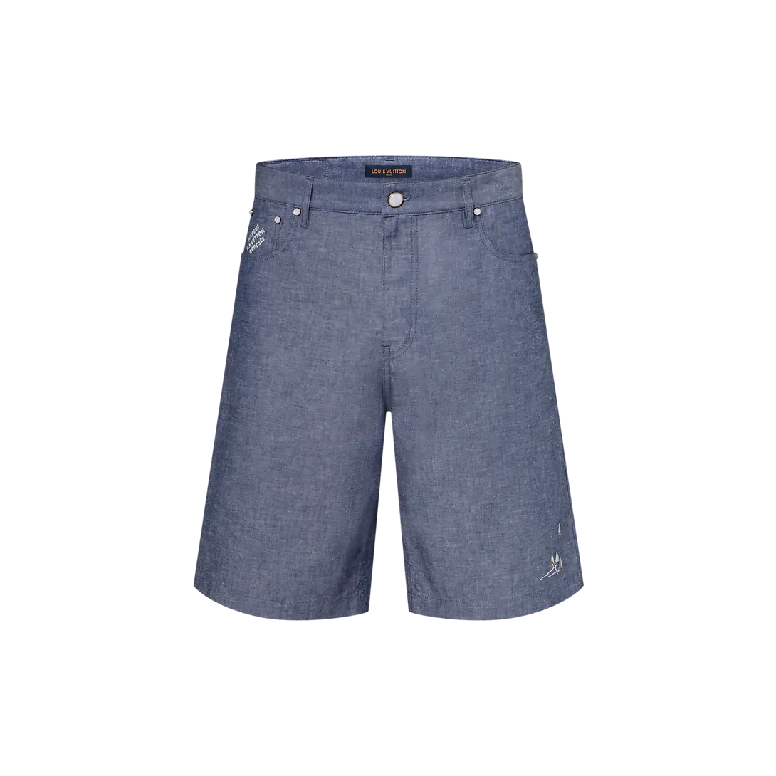 LV Embroidered Chambray Shorts Indigo