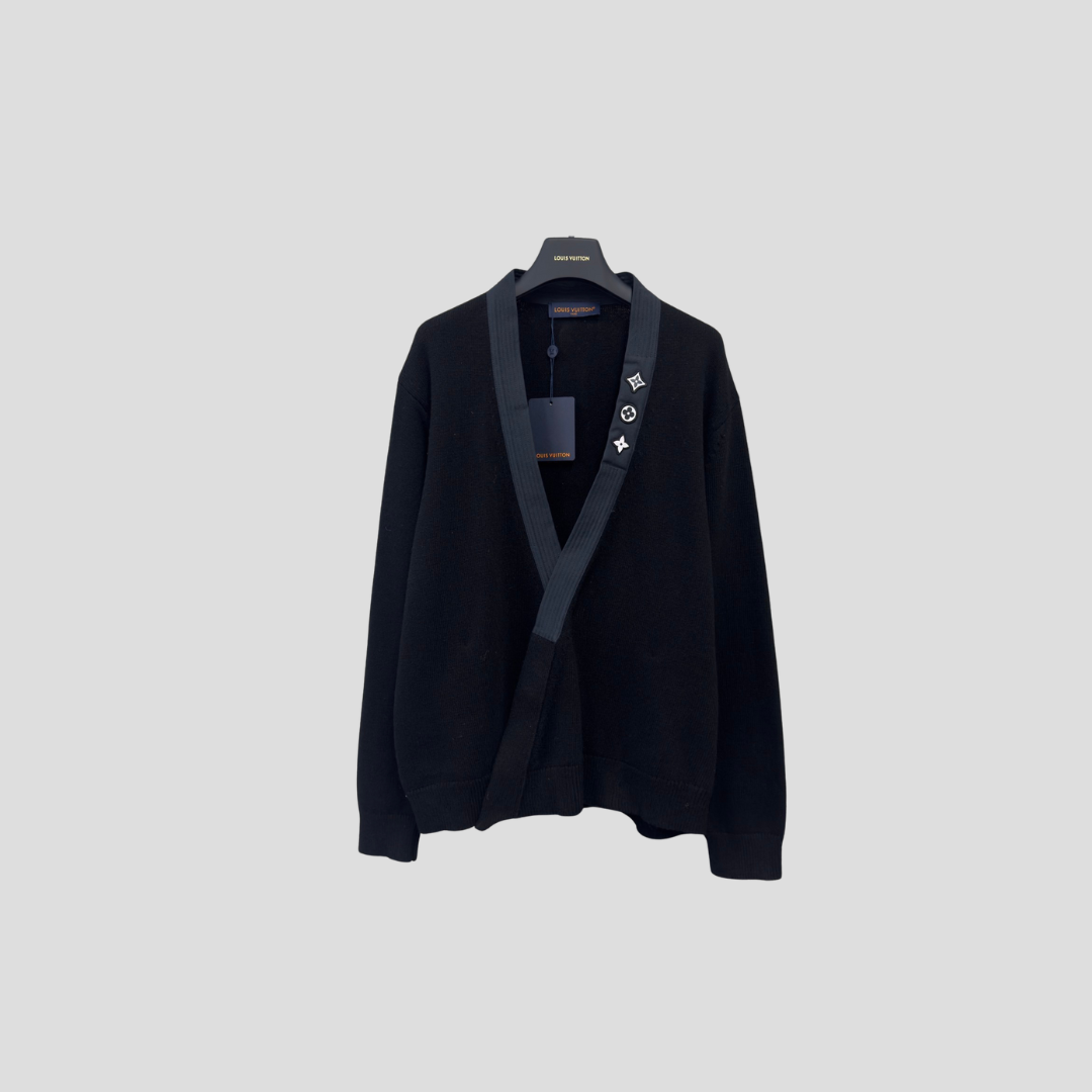 LV Embroidered Signature Cardigan In A Black Cotton Blend Ribbed Knit