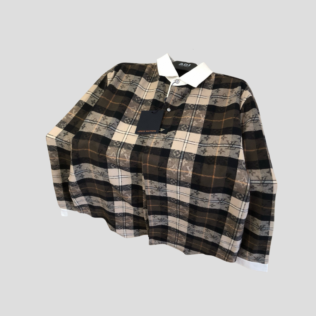 LV Flannel Long-Sleeved Polo Shirt In Brown And Beige Tones