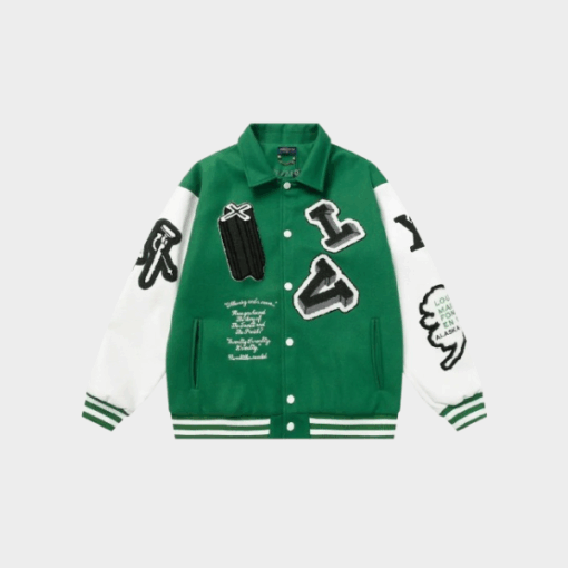 LV Graphics Leather Varsity Jacket Green/White