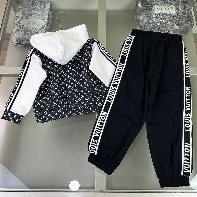 LV Kids’ Monogram Pattern Tracksuit Black White