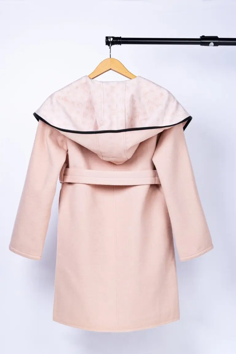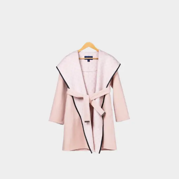 LV Long Wool Coat Pink with Black Border