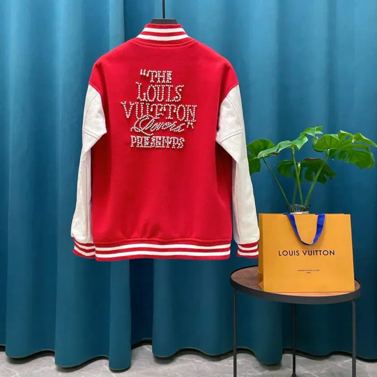LV Mix Leather Varsity Blouson Jacket Red