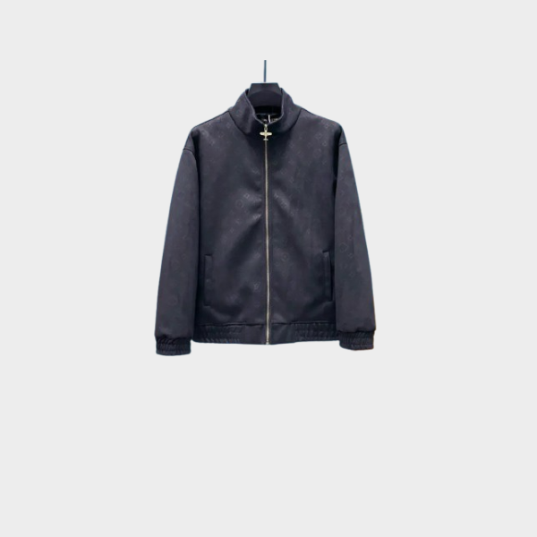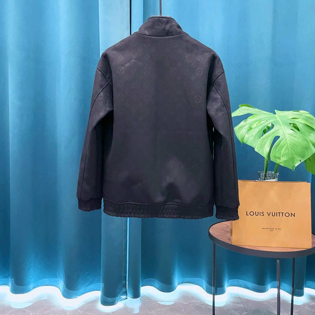 LV Monogram Debossed Leather Tracksuit Jacket Black