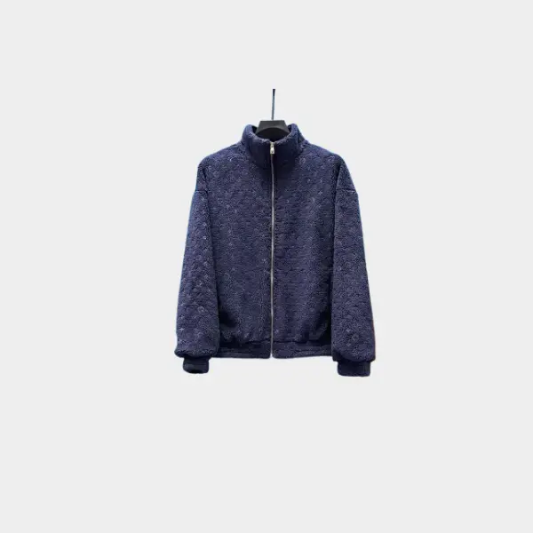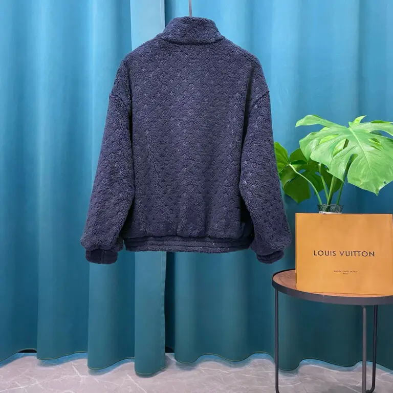 LV Monogram Debossed Leather Tracksuit Jacket Blue