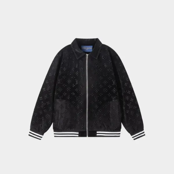 LV Monogram Debossed Suede Tracksuit Jacket Black