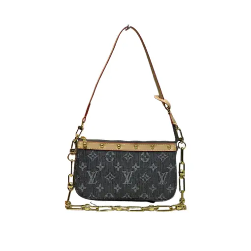 LV Monogram Denim Liv Pochette Handbag Black