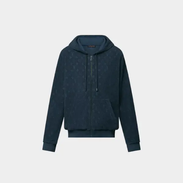 LV Monogram French Terry Zip-Through Hoodie Dark Navy