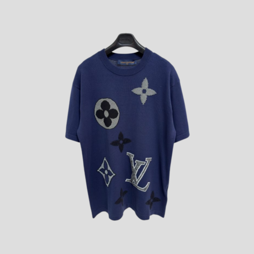 LV Monogram Short-Sleeved Knitted Crewneck In A Dark Blue Cotton Blend