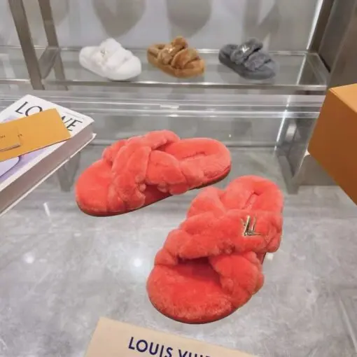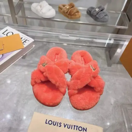 LV Orange Fuzzy Slipper Sunset Flat Mules