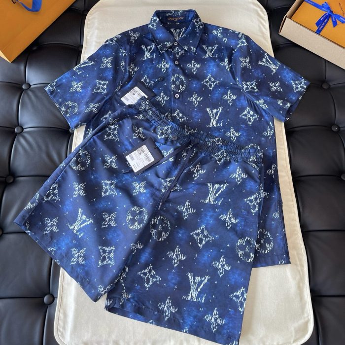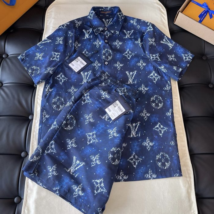 LV Printed Monogram Short-Sleeved Suite Ocean Blue