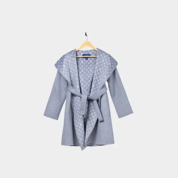 LV Reversible Signature Short Hooded Wrap Coat All Grey