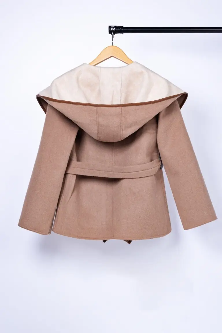 LV Reversible Signature Short Hooded Wrap Coat Brown