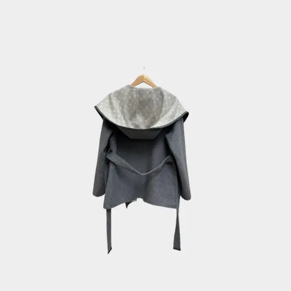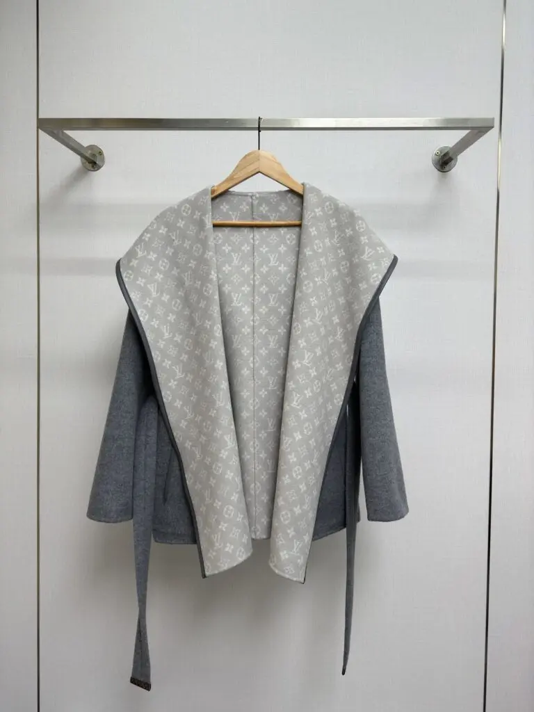 LV Reversible Signature Short Hooded Wrap Coat Grey