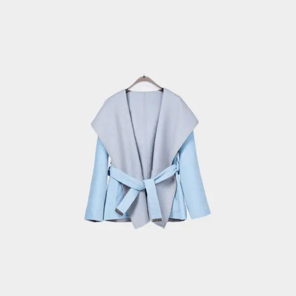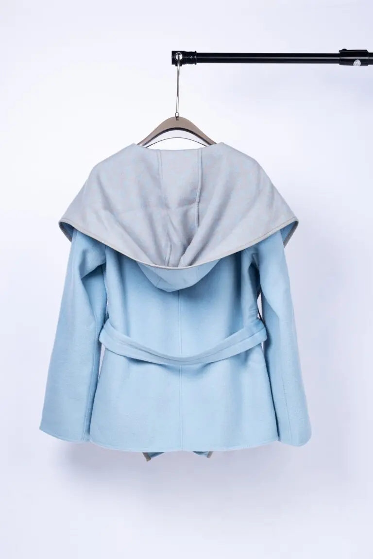 LV Reversible Signature Short Hooded Wrap Coat Sky Blue