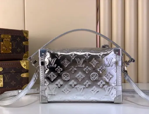 LV Side Trunk MM Handbag Silver Monogram Miroir Metallic Leather Tonal silver