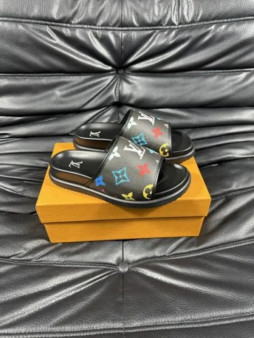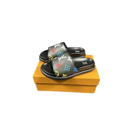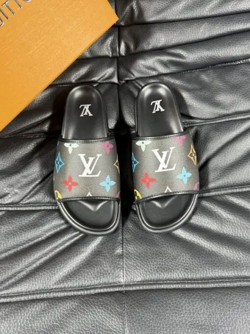 LV Slipper 6AM Flat Mule Black With Logo Multicolour