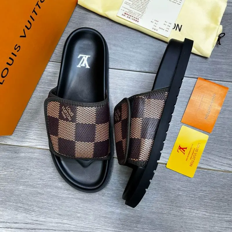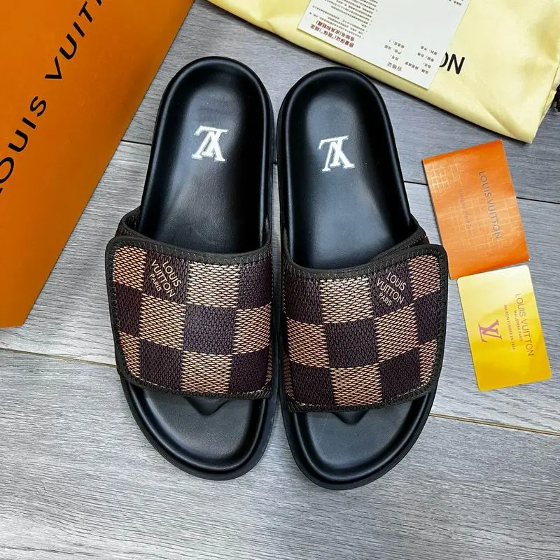 LV Slipper 6AM Flat Mule Black With Other Canvas Brown