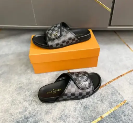LV Slipper Black Grey Check