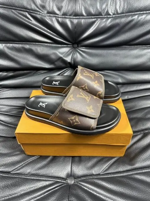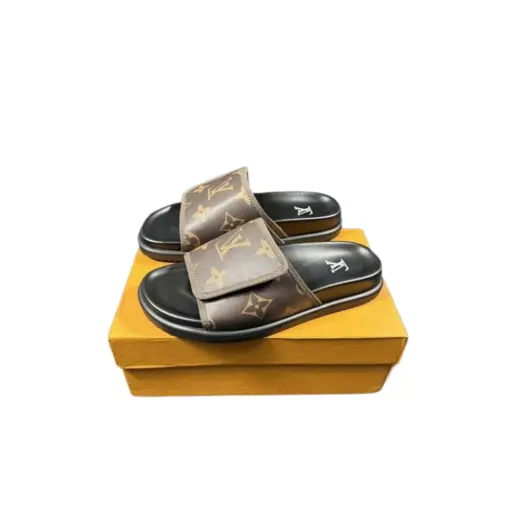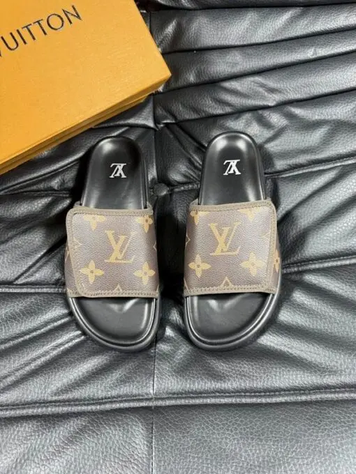 LV Slipper Chocolate Strap 6AM Flat Mule Black
