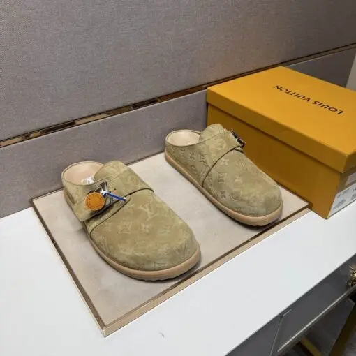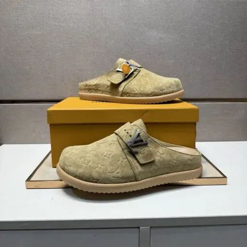 LV Slipper Easy Mule Slip On Shoe Beige Suede Calf Leather