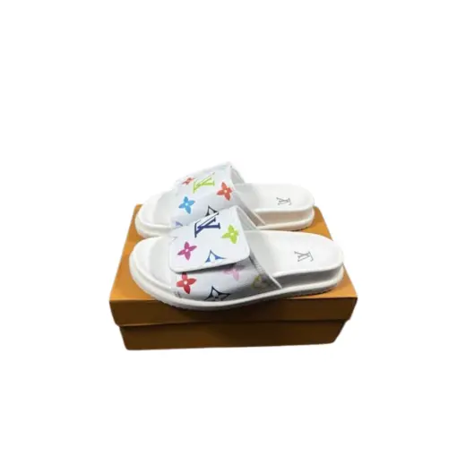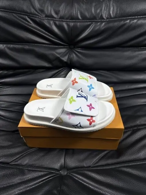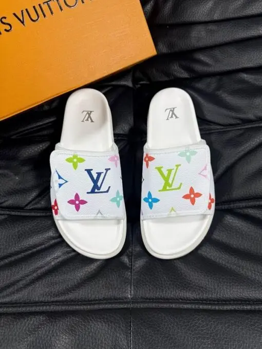 LV Slipper Multicolour Logo On Strap 6AM Flat Mule White