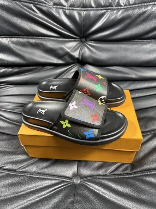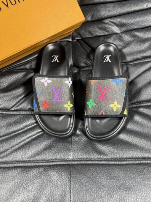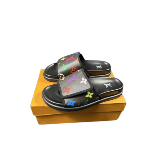 LV Slipper Strap 6AM Flat Mule Black With Multicolour Logo