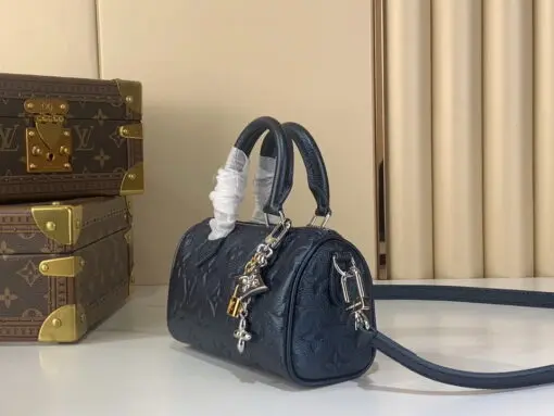 LV Speedy Bandouliere 20 Handbag Metallic Navy Blue Monogram Empreinte Leather