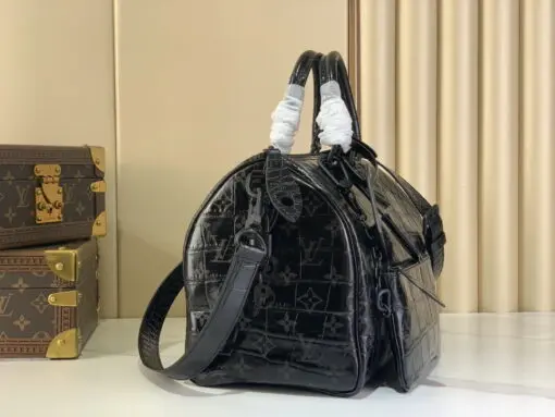 LV Speedy P9 Bandouliere 25 Handbag Dark Black Monogram Calfskin Leather