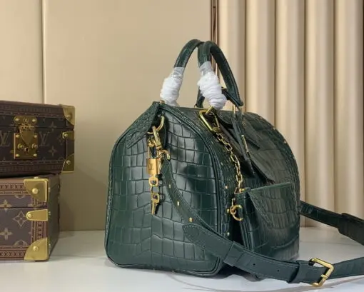 LV Speedy P9 Bandouliere 25 Handbag Dark Emerald Green Monogram Calfskin Leather