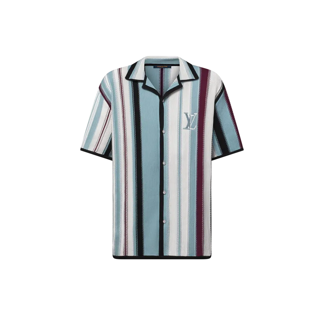 LV Striped Crochet Short-Sleeved Shirt Multicolor