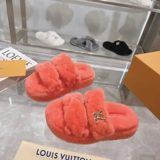 LV Sunset Slide Shearling Fuzzy Orange Slipper