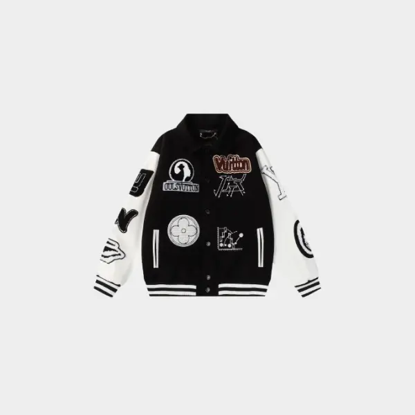 LV Varsity Jacket Stylish Streetwear Casual Baseball Coat White/Black