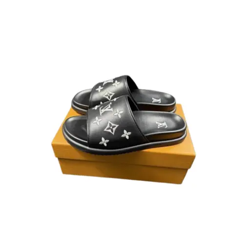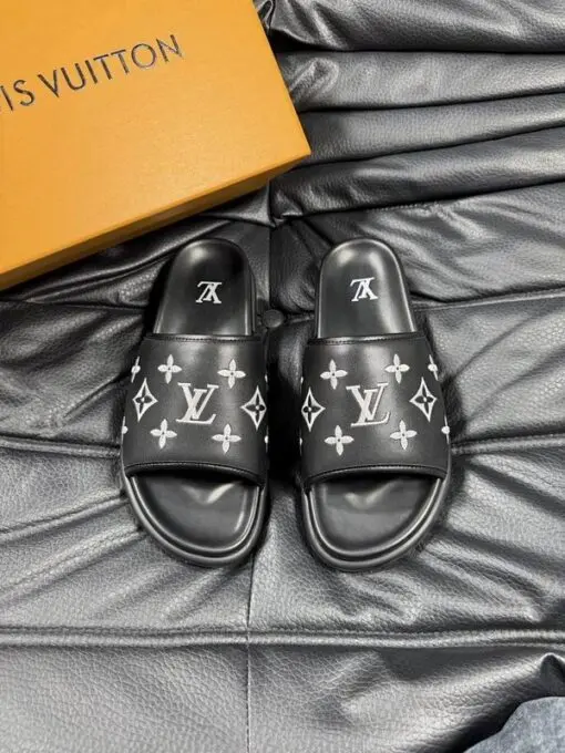 LV x Takashi Murakami Slipper 6AM Flat Mule Black With Logo
