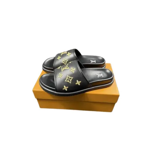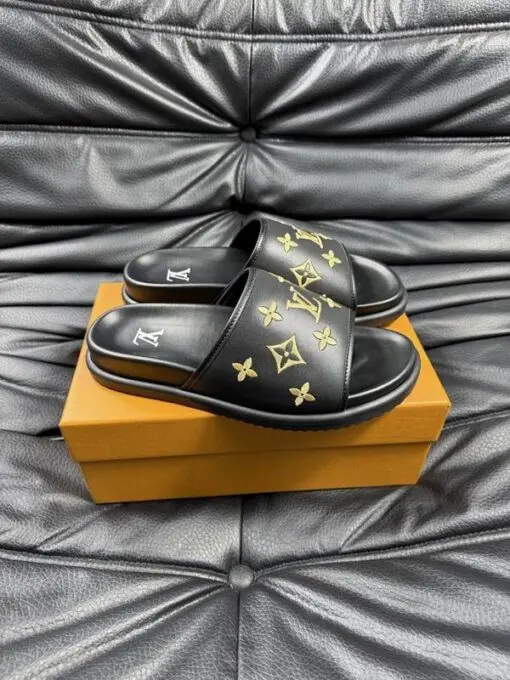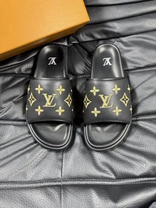LV x Takashi Murakami Slipper 6AM Flat Mule Black With Yellow Logo