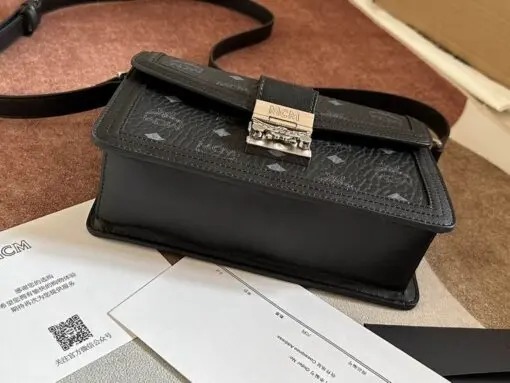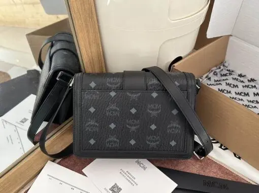 MCM Small Tracy Monogram Cross Body Bag Black