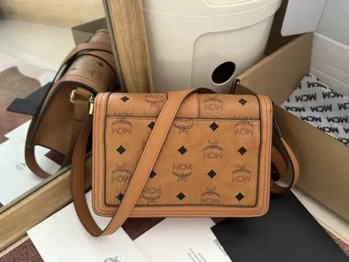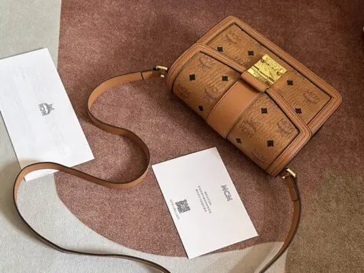 MCM Small Tracy Monogram Cross Body Bag Brown