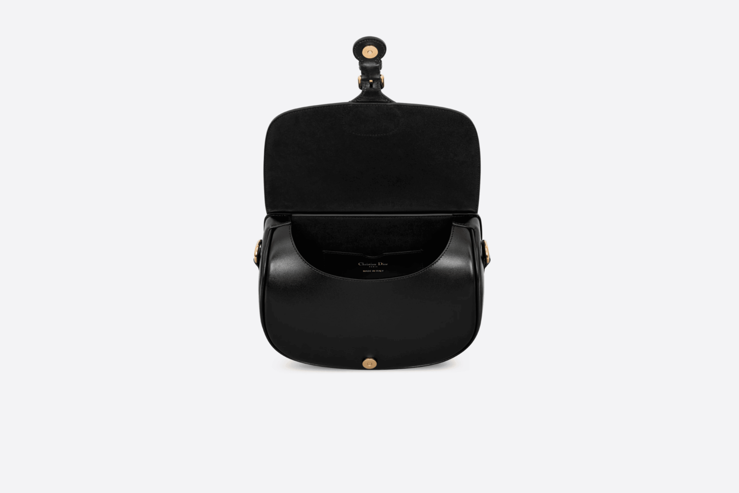 The Dior Bobby is a hobo design with refined lines and harmonious proportions. This midsize model is crafted from black box calf leather with a supple suede interior, and is enhanced with aged metal hardware with a gold finish. The removable and adjustable shoulder strap features a military-inspired buckle and allows it to be worn on the shoulder, across the body or by hand.