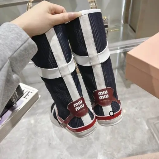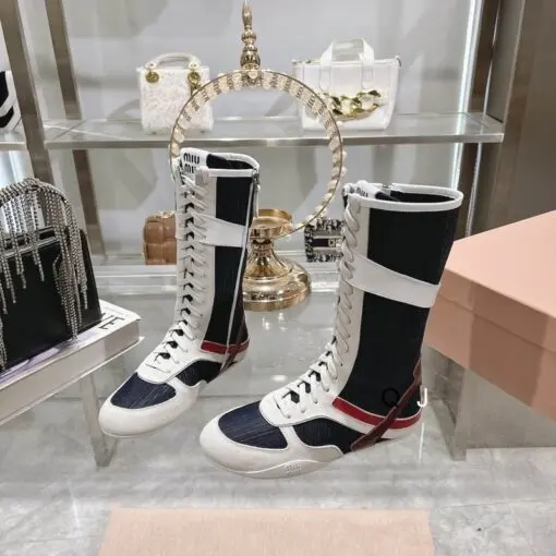 Miu Miu Gymnasium Technical Fabric & Suede Boxeur Boots Black/White