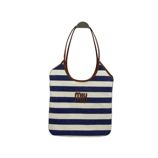 Miu Miu Ivy Denim Tote Bag Blue White