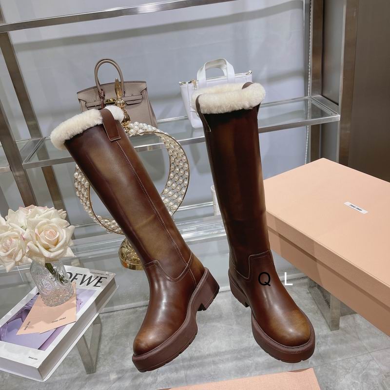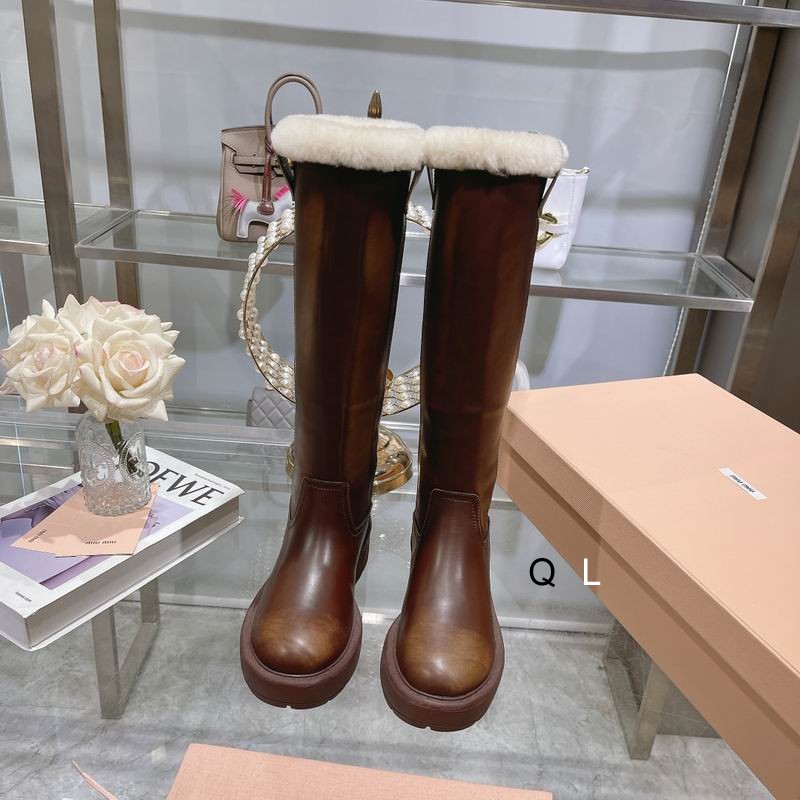 Miu Miu Knee-High Platform Boots Brown