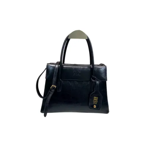 Miu Miu Solitaire Leather Tote Bag Black