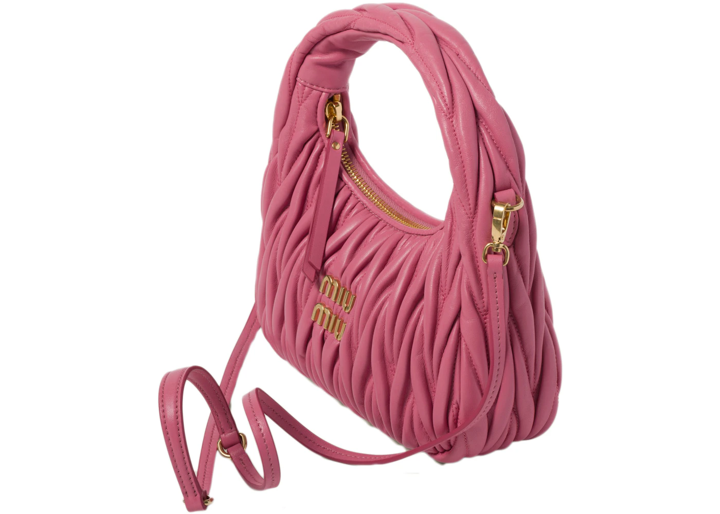 Miu Miu Wander Matelasse Nappa Leather Mini Hobo Bag Pink