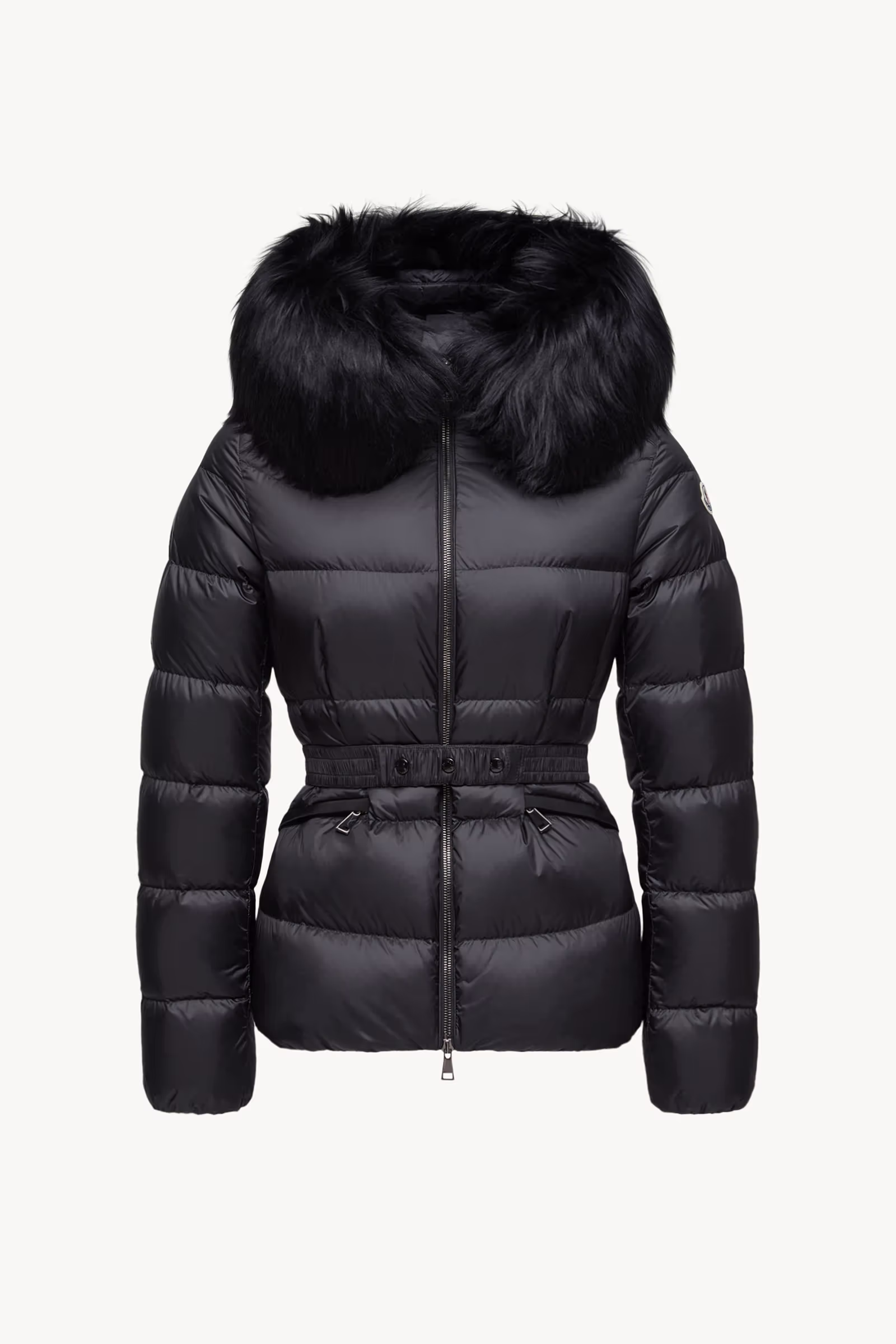 Moncler Boed Hooded Shearling Short Down Jacket Black