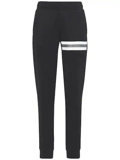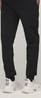 Black cotton sports pants with elastic waistband and pockets.
