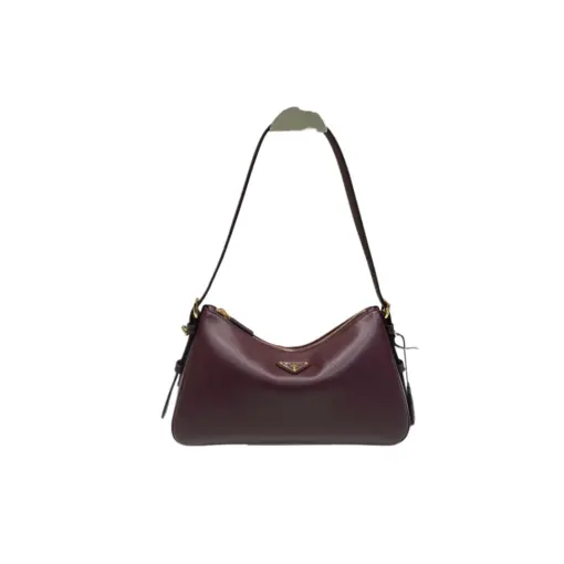 Prada Aimée Medium Leather Shoulder Bag Burgundy Brown