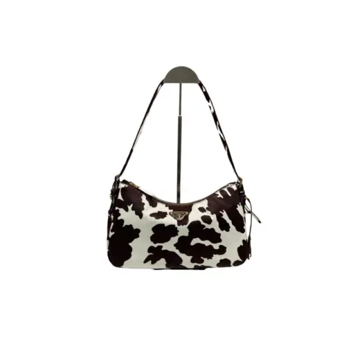Prada Aimèe medium printed Leather Shoulder Bag White/Dark Brown