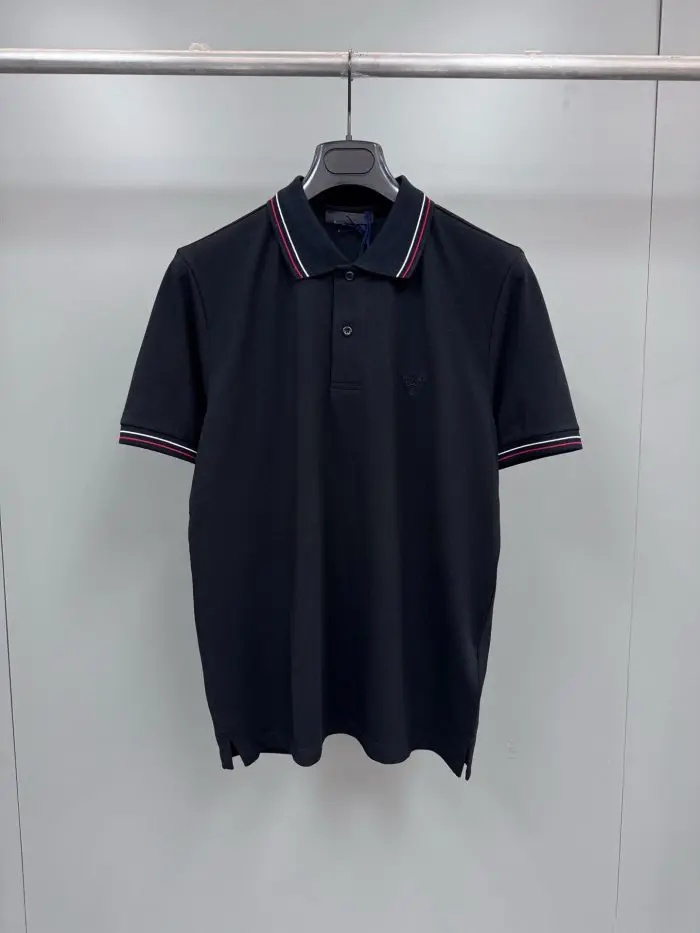 Prada Beyaz Men Short Sleeve Pique Polo T-Shirt Black