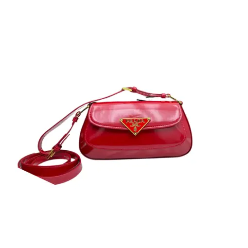 Prada Cleo Patent Leather Shoulder Bag Cherry Red