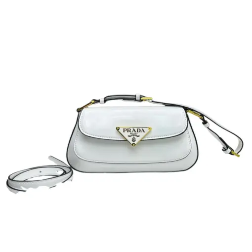 Prada Cleo Patent Leather Shoulder Bag White